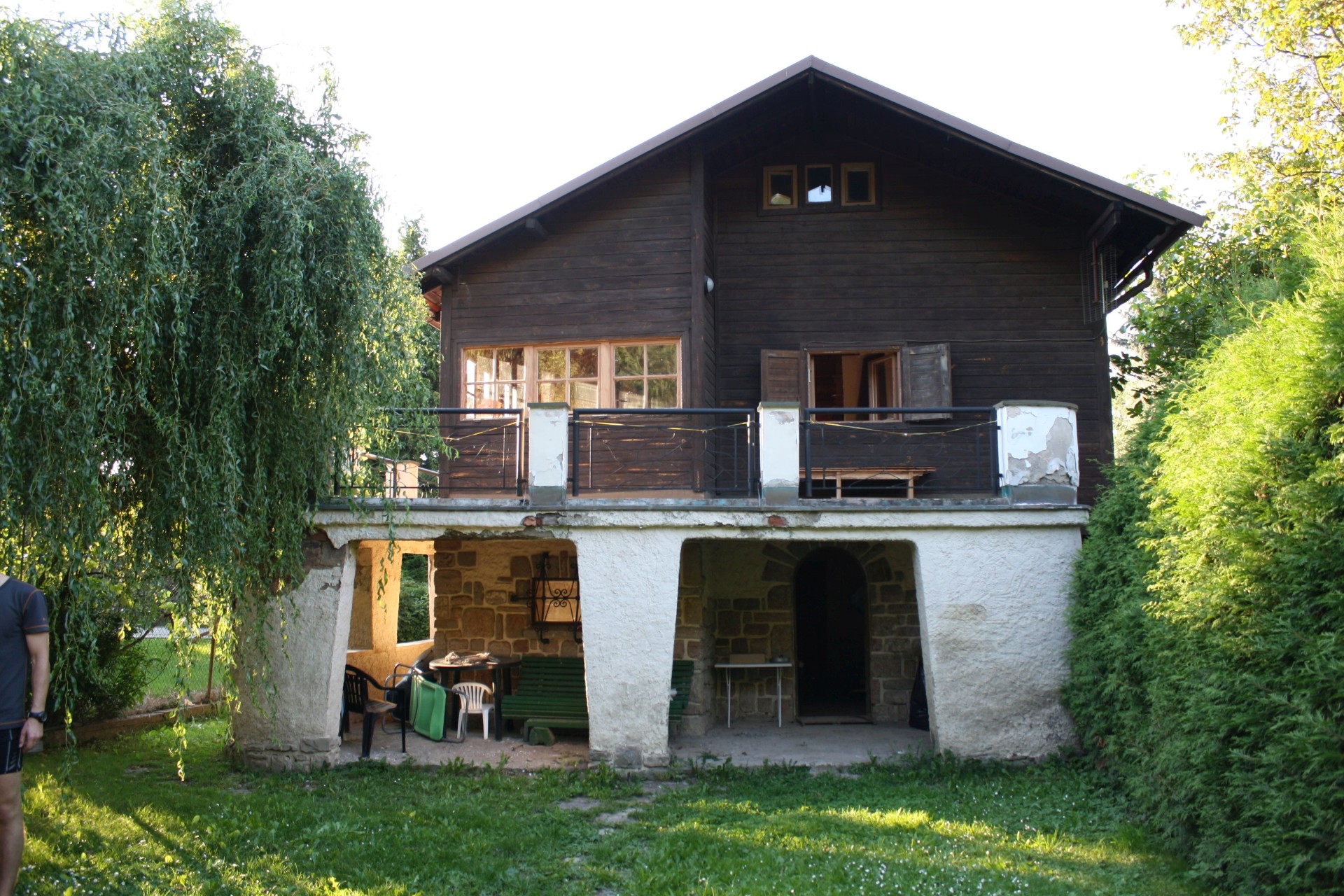 Stávající chata se skládala z přízemní betonové části, která tvoří jakousi podnož a dřevostavby o dvou nadzemních podlažích, která stála na betonové podnoži a kde se nacházeli obytné místnosti. Při rekonstrukci byl tento konstrukční i funkční princip zachován. Betonová část byla opravena a stávající dřevostavba byla kompletně odstraněna a nahrazena novou dřevostavbou. Dispozice byla změněna tak, aby mladé pětičlenné rodině poskytovala veškeré pohodlí. Architektura nástavby, její členitost i materiálové řešení částečně vychází z původní dřevěné části chaty. Celkový ráz je již modernější, větší okna ve dvou výškových úrovních poskytují mnoho světla uvnitř a vytvářejí pocit lehkosti zvenku. Chata leží bezprostředně u řeky Berounky a její obyvatelé mají k vodě pozitivní vztah. Z tohoto spojení přirozeně vyplynul téměř námořnický charakter stavy. Zadní terasa, přístupna z obývacího pokoje tudíž funguje jako kapitánský můstek.